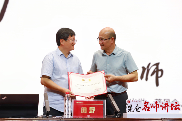 讲座开始前,吾满江·艾力代表学校向田野院士颁发福利视频