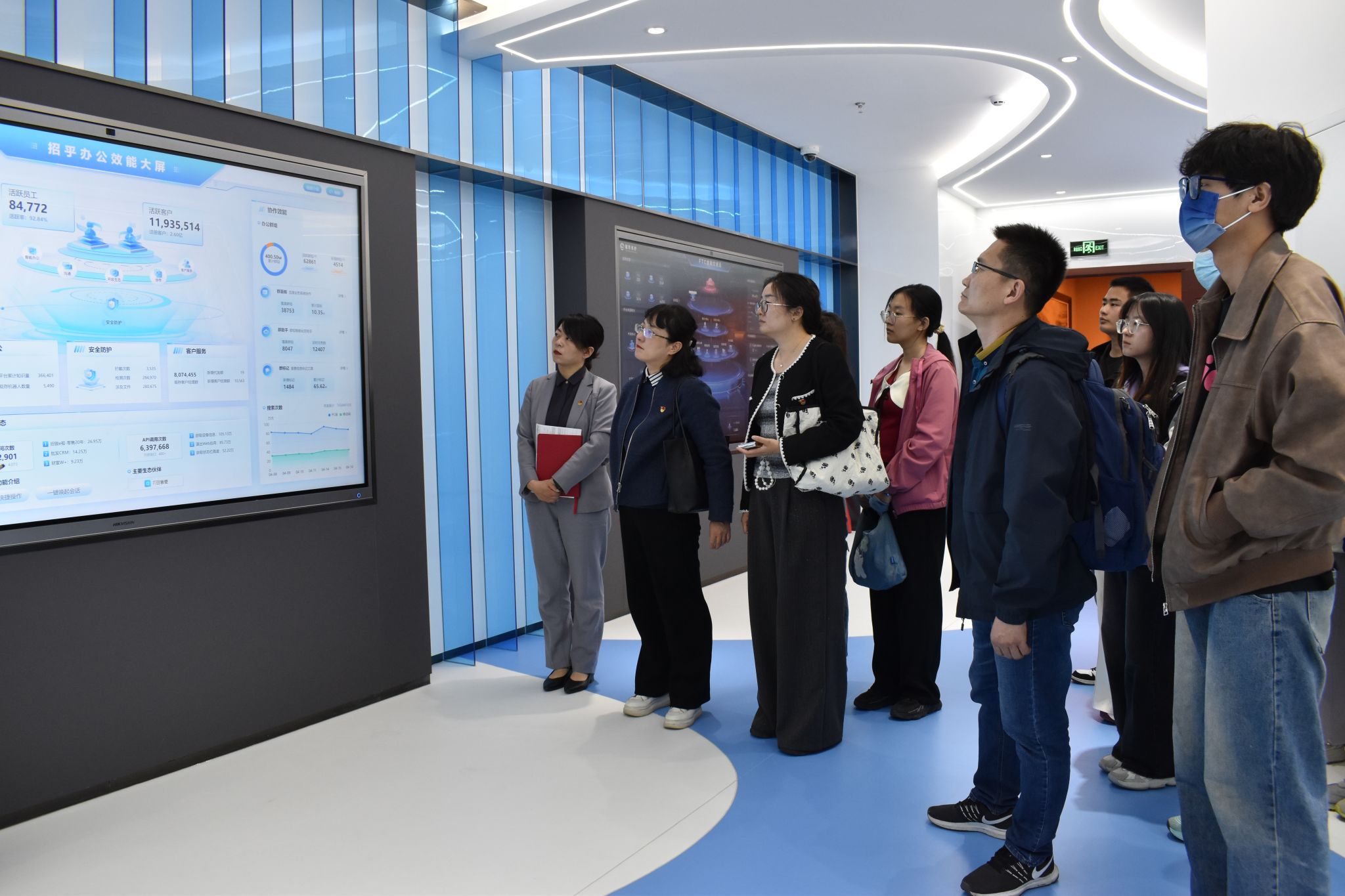 在招行银行工作人员的引导下,学院师生参观了数字金融展厅,现场体验了智能风控、数字金融等前沿技术应用。招行讲解团队现场演示了金融大数据分析平台,并结合数学建模案例讲解技术在业务中的实际应用。学生代表纷纷表示,此次参访不仅拓宽了行业视野,更深刻认识到数学理论在金融科技中的核心价值,明确了未来职业发展方向。