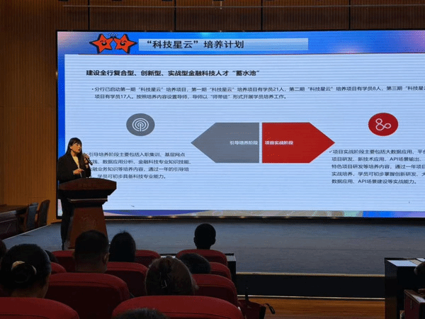 随后,科技部工作人员为同学们介绍了科技部主要的工作方向以及所需要的专业类别,详细阐述了各种培养计划在引导培养及项目实战阶段的工作内容,使同学们对科技部有了较为全面的认识。人事资源部门为同学们较为关心的薪资福利做了翔实的介绍,并对各个地区不同的待遇作了充分的解释说明。优秀校友马晶学姐也现身说法,为大家讲述了自己在工商银行的四次“转岗”经验,以此鼓励在场同学们积极尝试,敢于挑战,为自己争取成长锻炼的机会。